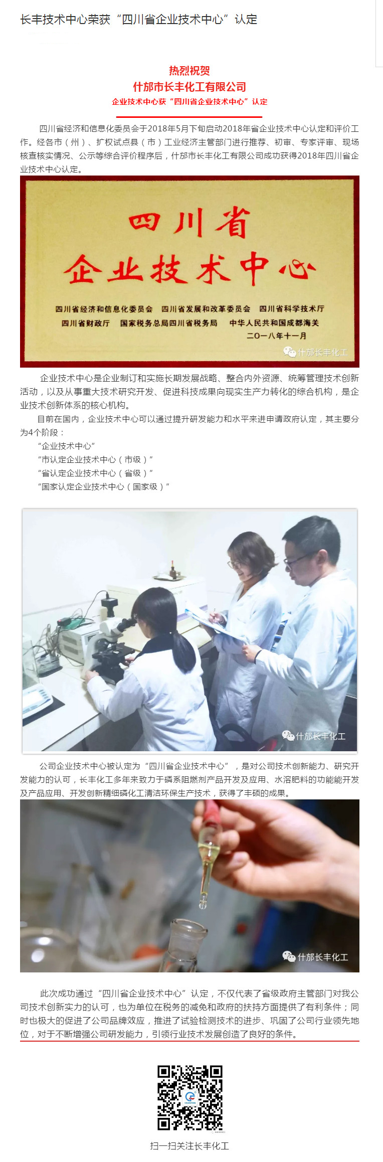 長豐企業(yè)技術(shù)中心獲得四川省認(rèn)定企業(yè)技術(shù)中心